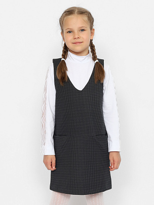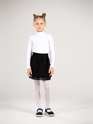 Джемпер из гладкокрашенного полотна с коротким рукавом. Рукава со сборкой по центру. Горловина окантована бейкой из основного полотна. Перед джемпера декорирован бантом из репсовой ленты.