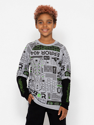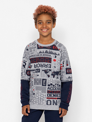 Джемпер с длинным втачным рукавом. Воротник из материала с добавлением эластана. Перед декорирован принтом.