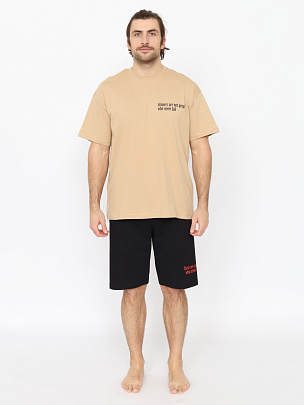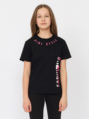Футболка со спущенным плечом и короткими рукавами. Спереди карман декорирован ришелье. Горловина круглая, обработана притачной бейкой. По ростку горловины шов притачивания закрыт долевиком.