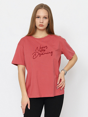 Футболка прямого силуэта длиной по линию бедер. Со спущенными плечами, короткий рукав. Круглая горловина обработана узкой притачной обтачкой из рибаны с эластаном. Полочка декорирована вышивкой шнуром.