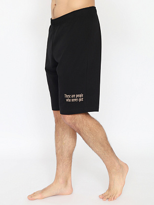 Гладкокрашенная пижама из футболки и шорт. Футболка свободного покроя с коротким рукавом. Горловина обработана притачной бейкой из рибаны с лайкрой. Перед оформлен небольшим принтом. Шорты свободного покроя длиной ниже колена выполнены из полотна дополнительного цвета. Цельнокроенный пояс обработан плоским швом вподгибку с одновременным прокладыванием резинки. На левой половинке внизу небольшой принт.