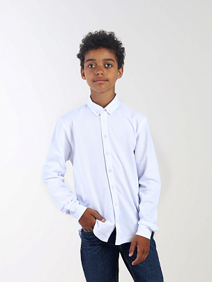 Рубашка-поло для мальчика. Рукава с манжетами. Модель с длинными рукавами и отложным воротником. Спереди застежка на пуговицы.