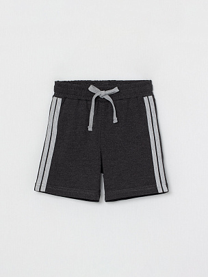 Шорты для мальчика с боковыми карманами и притачным поясом из основного полотна. В пояс вставлена резинка и функциональный шнур.